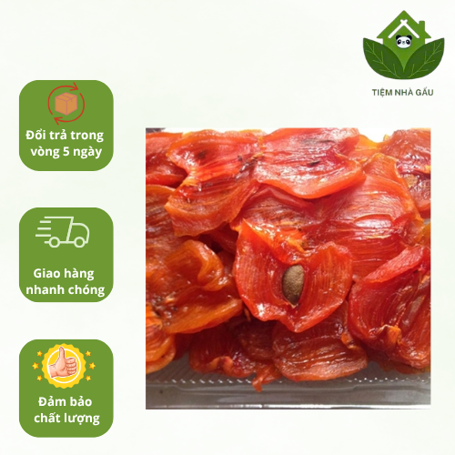 Hồng sấy lát là sản phẩm được chế biến từ quả hồng tươi chín mọng, cắt thành từng lát mỏng và đem sấy ở nhiệt độ vừa phải nhằm giữ lại hương vị tự nhiên, màu sắc đẹp mắt và giá trị dinh dưỡng của quả hồng. Đây là loại hồng sấy tiện lợi, dễ sử dụng và được nhiều người ưa chuộng trong các món ăn vặt lành mạnh.