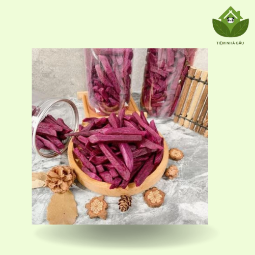Thành phần: 100% khoai lang tím tươi, không đường, không chất bảo quản, không phụ gia thực phẩm.