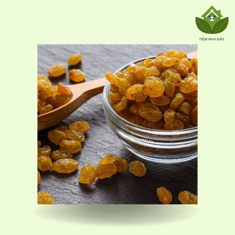 – Nho sấy xanh không hạt: Loại nho này được sấy từ giống nho xanh không hạt, có màu vàng nhạt hoặc xanh nhạt sau khi sấy. Vị ngọt thanh mát, hơi chua nhẹ, rất dễ ăn. Nhờ có màu sắc tươi sáng và hương vị nhẹ nhàng, nho sấy xanh thường được dùng trong các món salad, bánh nướng hoặc ăn kèm sữa chua.